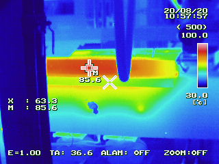 室内の温湿度をロガーが記録し、表面温度を熱電対+温度ロガーで記録します。