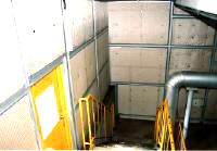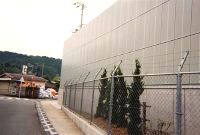 ごみ処理施設の復水器置場では、ファンの騒音が敷地境界において規制値を超えないよう、壁に吸音処理が必要となります。